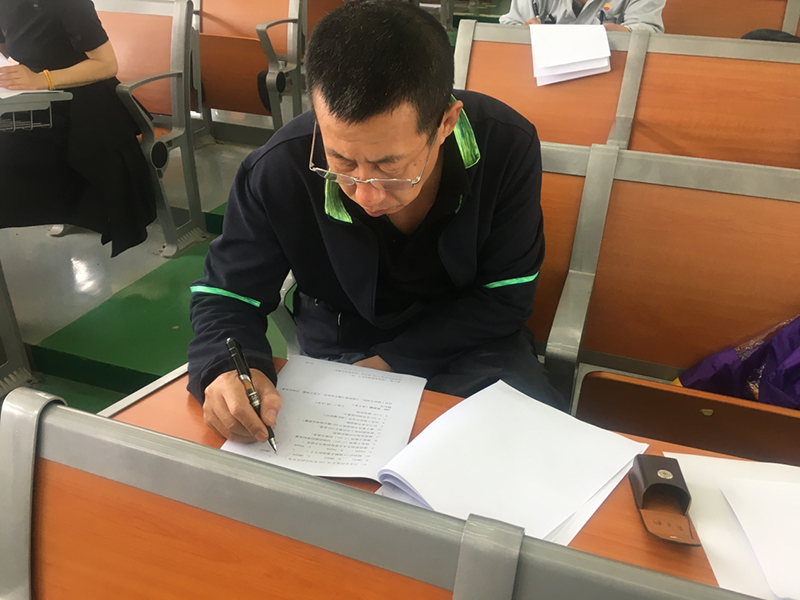 6月16日下午換崗考試在職大階梯教室如期進(jìn)行,員工們進(jìn)考場(chǎng)前上交通訊設(shè)備及復(fù)習(xí)資料,為避免錯(cuò)拿物品,監(jiān)考老師做到“一物一貼,一人一貼”做好標(biāo)記。開考后,所有員工認(rèn)真答題,年紀(jì)大的員工早早的戴好了老花鏡,更有員工拿出了鉛筆、橡皮和尺準(zhǔn)備繪制流程圖,個(gè)個(gè)都是摩拳擦掌有備而來,為了本次換崗考試卯足了勁兒。當(dāng)看到題庫(kù)外的考試題后,大家也沒有緊張迷茫,而是略加思索,結(jié)合工作實(shí)際寫下心中的答案,交上了一份滿意的答卷。